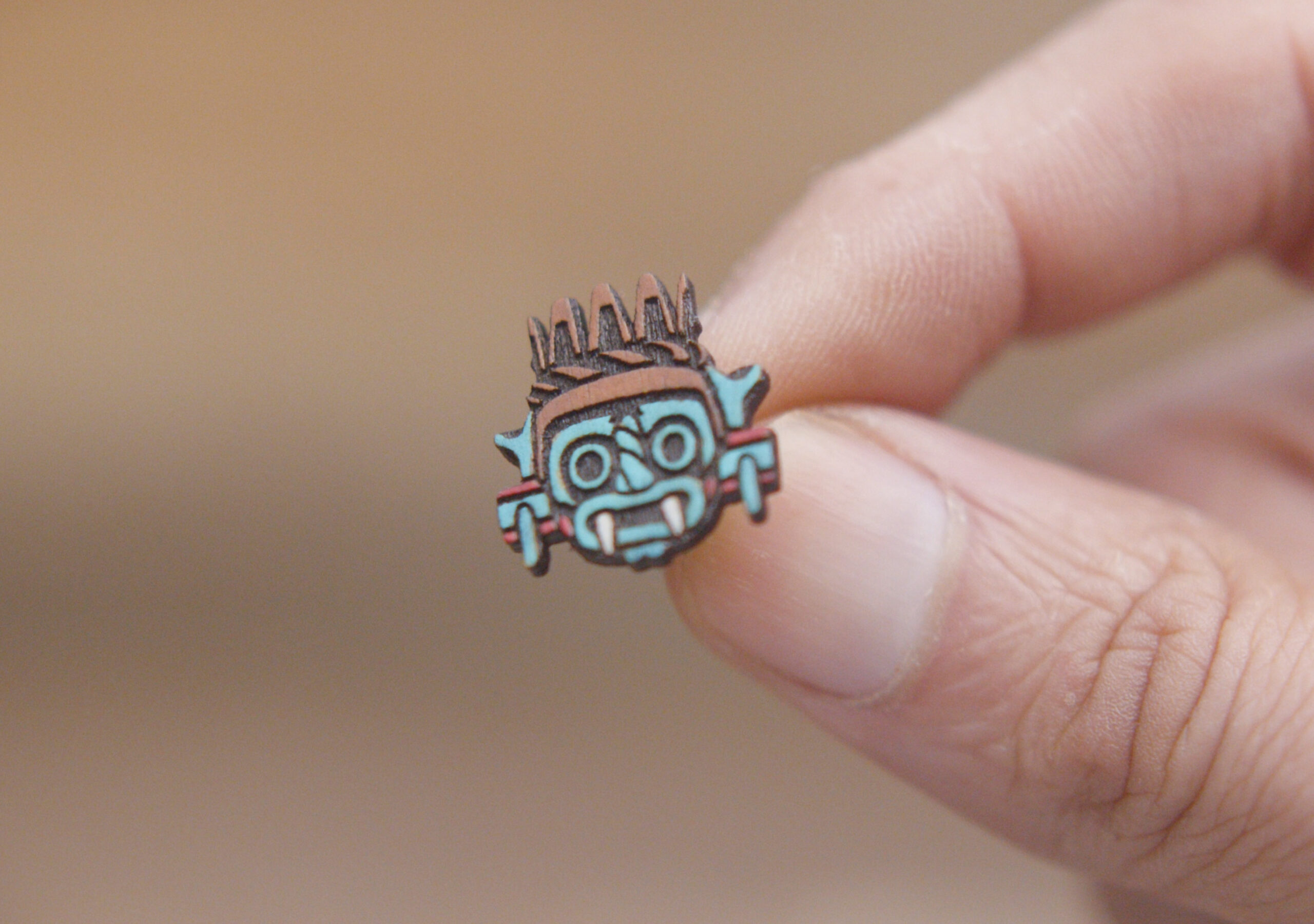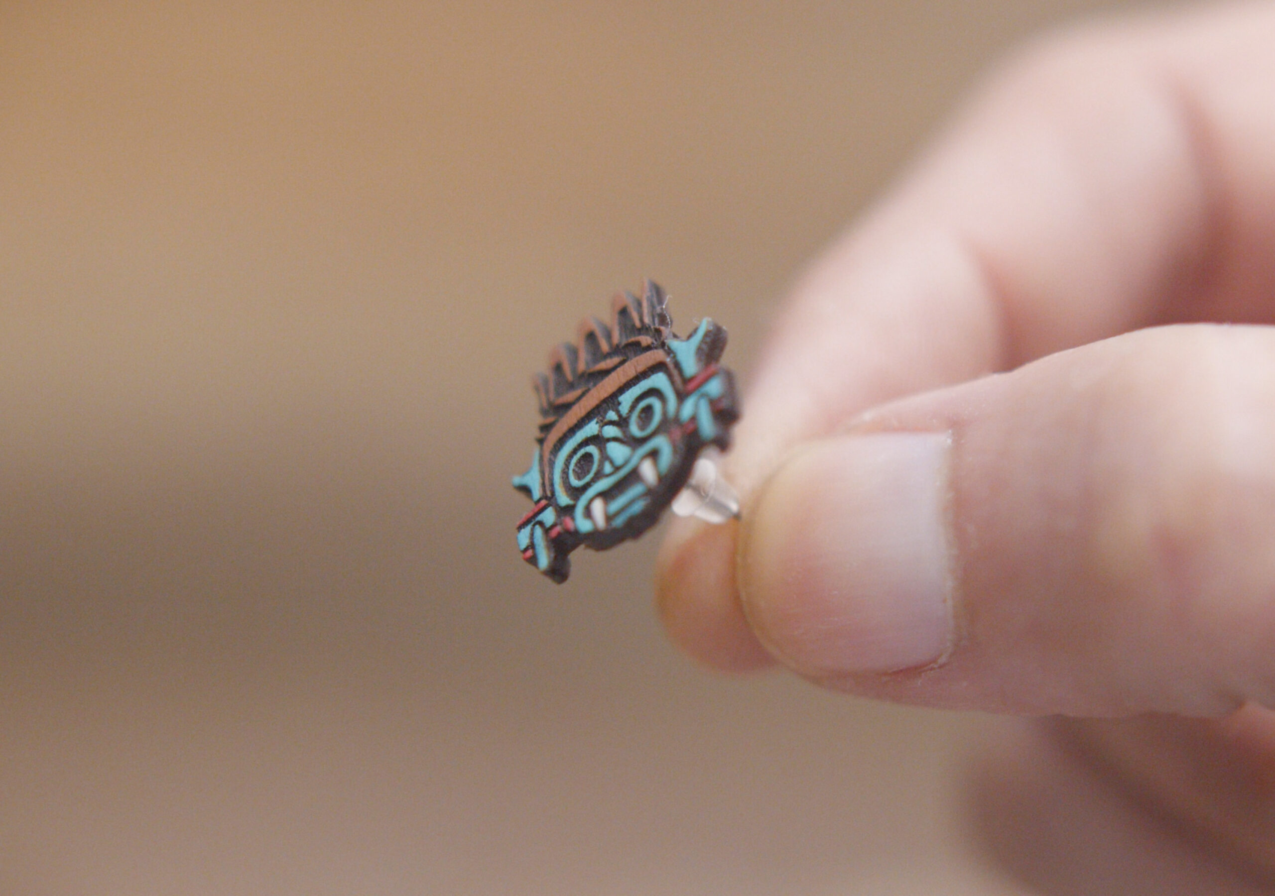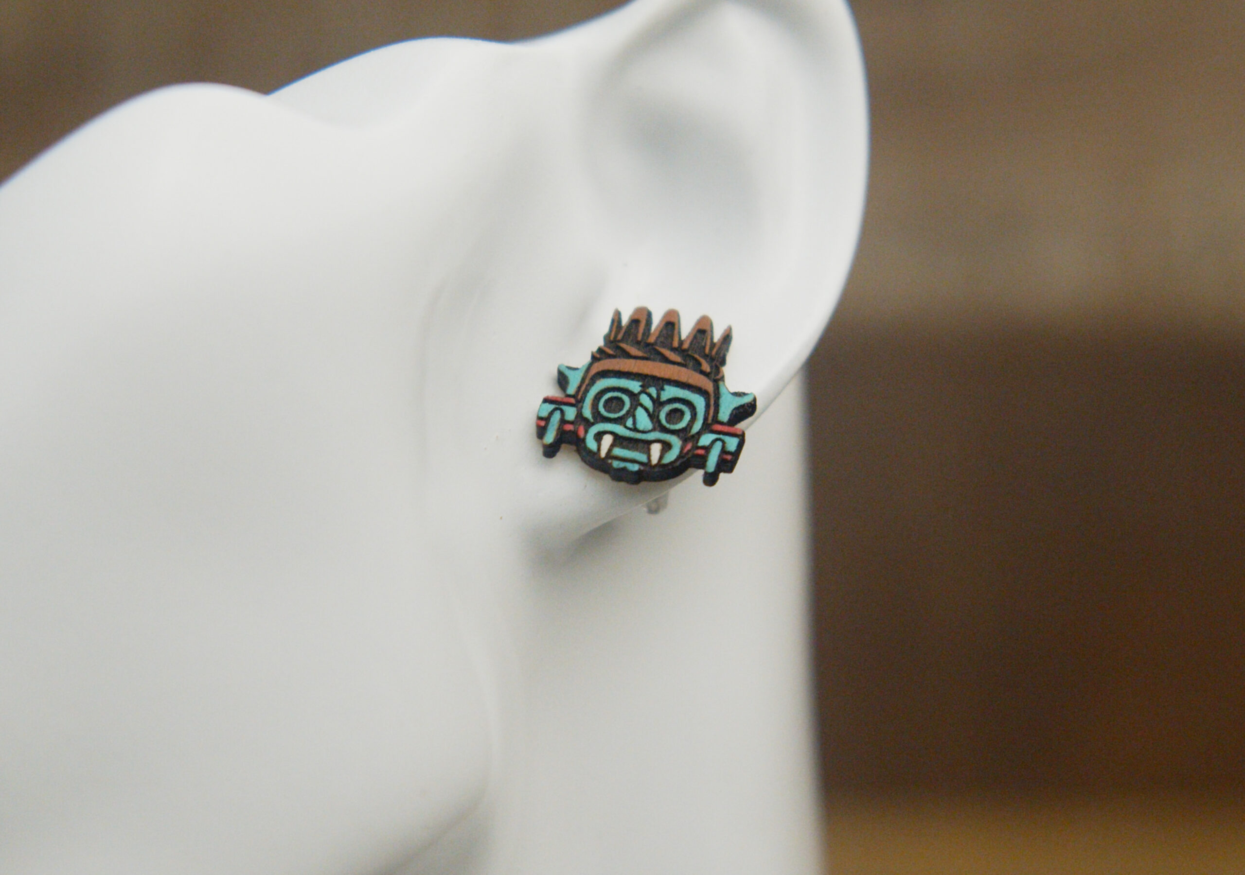 These Tlaloc wooden stud earrings are handmade and that makes each one of a kind, not two are exactly the same.